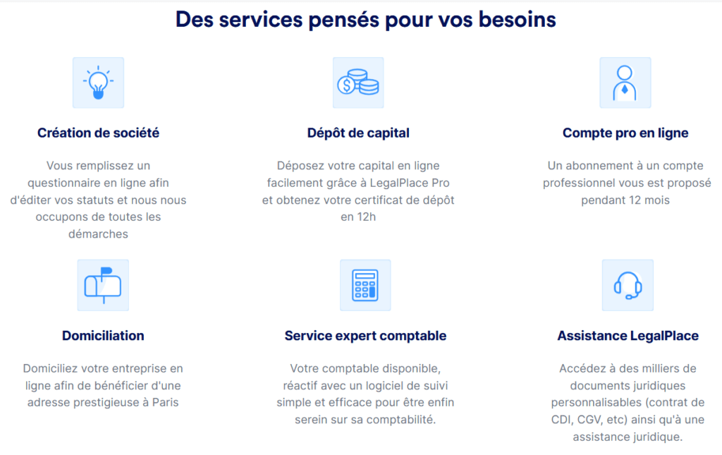 2. Les services principaux proposés par LegalPlace